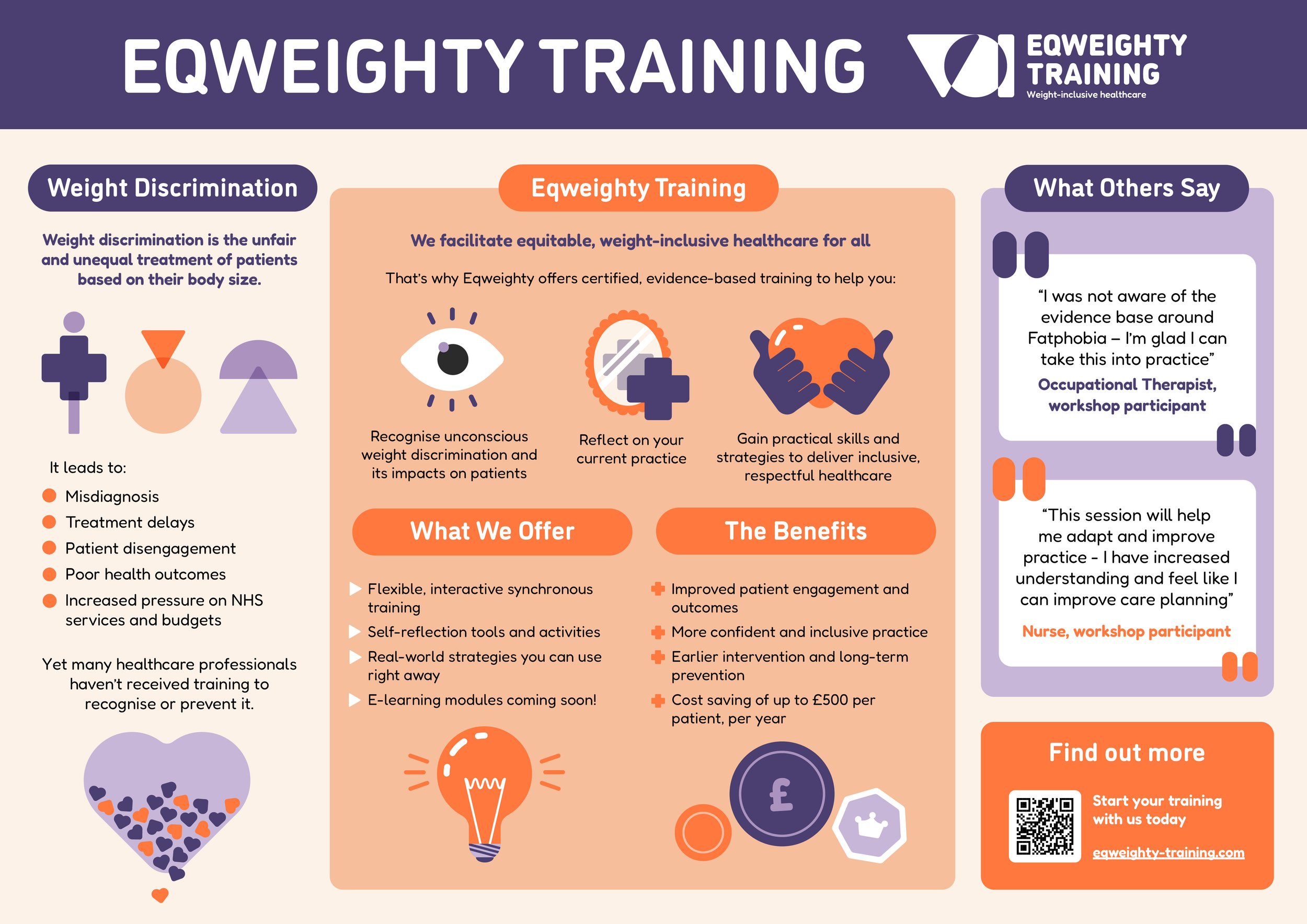 We offer specialist workshops and e-learning training for healthcare practitioners to recognise and address weight discrimination. We have trained doctors, nurses, midwives, occupational therapists and others.
